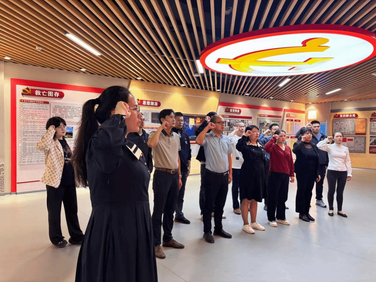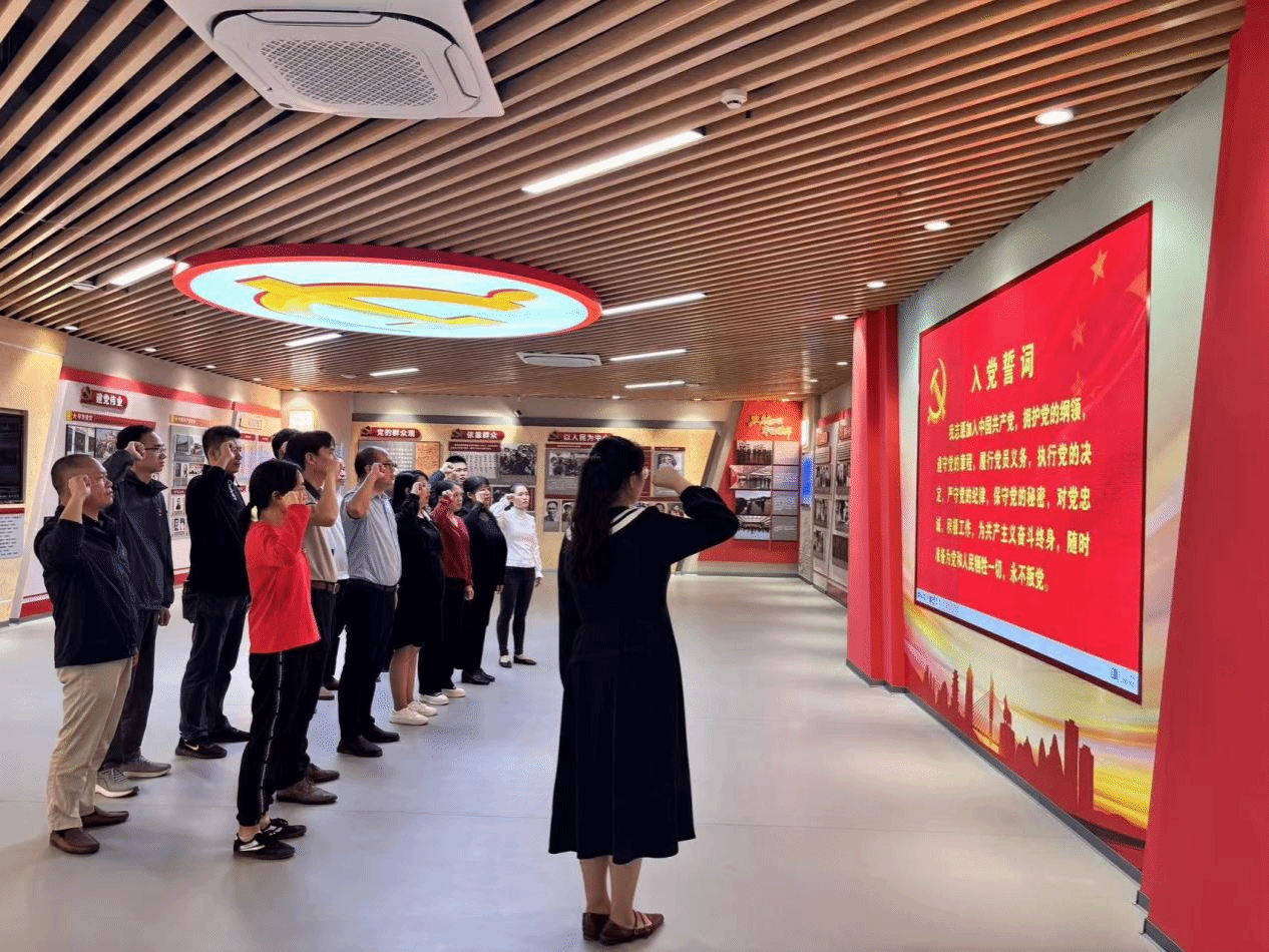 党员们依次参观体验馆六大板块,通过沉浸式观摩、图文学习等方式,感悟党的光辉历程与党建成果,领会新时代党风廉政建设意义,感受党员先锋模范担当。参观学习结束,全体党员在宣誓厅重温入党誓词“我志愿加入中国共产党,拥护党的纲领,遵守党的章程……”誓言清晰有力,让党员们回忆起入党时的初心,也进一步明确了自身责任。