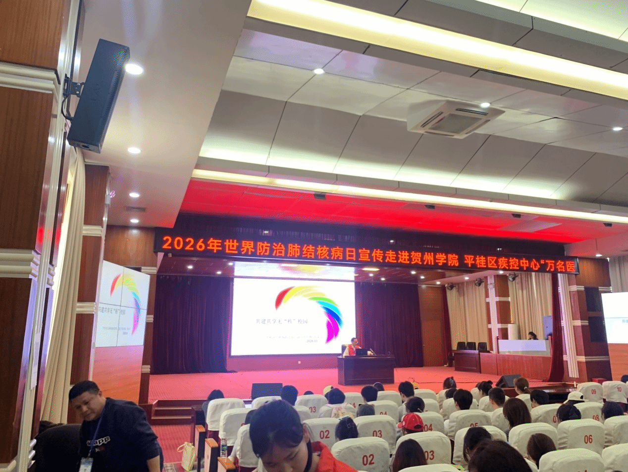 2026年3月24日是第31个“世界防治结核病日”,贺州市平桂区疾病预防控制中心携手贺州学院,以“全面行动 全力投入 全民参与 终结结核”为主题,开展结核病防治专题宣传活动,通过多形式科普、多主体联动,向在校师生普及结核病防治知识,织密校园健康安全防护网。